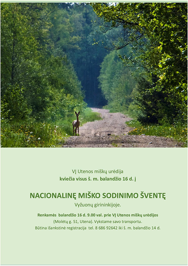 Nacionalinė miško sodinimo šventė vyks ir Utenos rajone, Vyžuonų girininkijoje. Tam tikslui skirtame žemės plote bus sodinami medeliai, o kartu vyks ir švietėjiškas darbas: Utenos miškų urėdijos darbuotojai paaiškins apie medžių kirtimus, kirtavietės atkūrimą, įstatymus, miškininko veiklą, atsakys į rūpimus klausimus. „Ši šventė daugiau skirta švietėjiškai veiklai: svarbu tai, kad žmonės iš arti pamatytų mūsų darbą”, – akcentavo VĮ „Utenos miškų urėdija” miškų urėdė Aurelija Jočienė, tikindama, kad darbo ir medelių visiems, atvyksiantiems į Miškasodžio šventę, tikrai užteks.