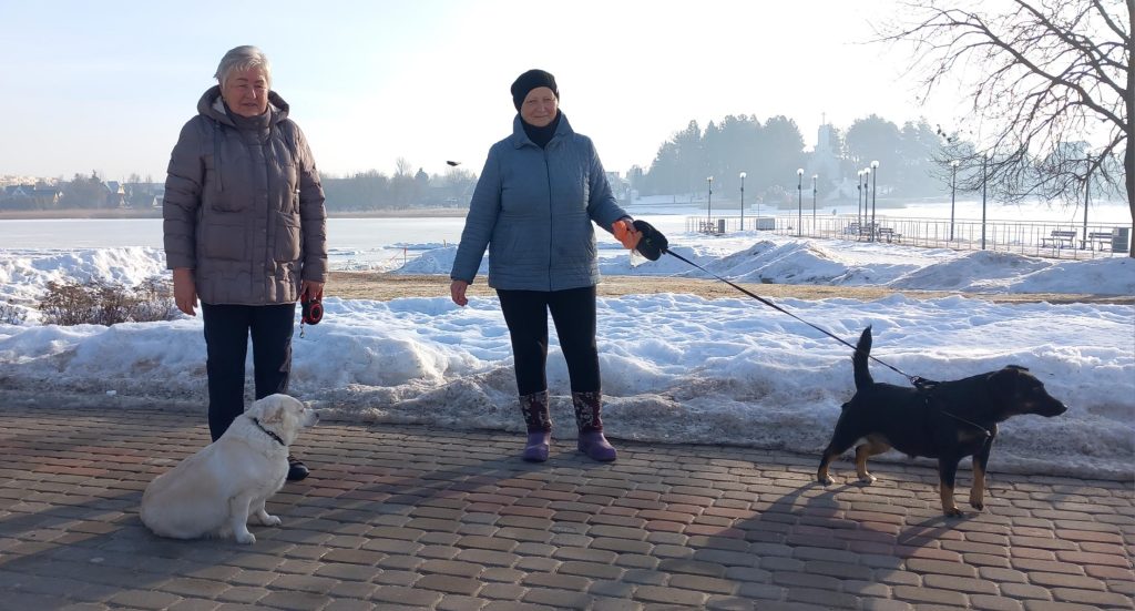 Dauniškio parke sutiktos Irena (su kalyte Ara) (dešinėje) ir Audronė (su augintine Pipa) teigė kasdien eidamos pasivaikščioti pasiimančios ne po vieną maišelį savo šuniukų ekskrementams surinkti