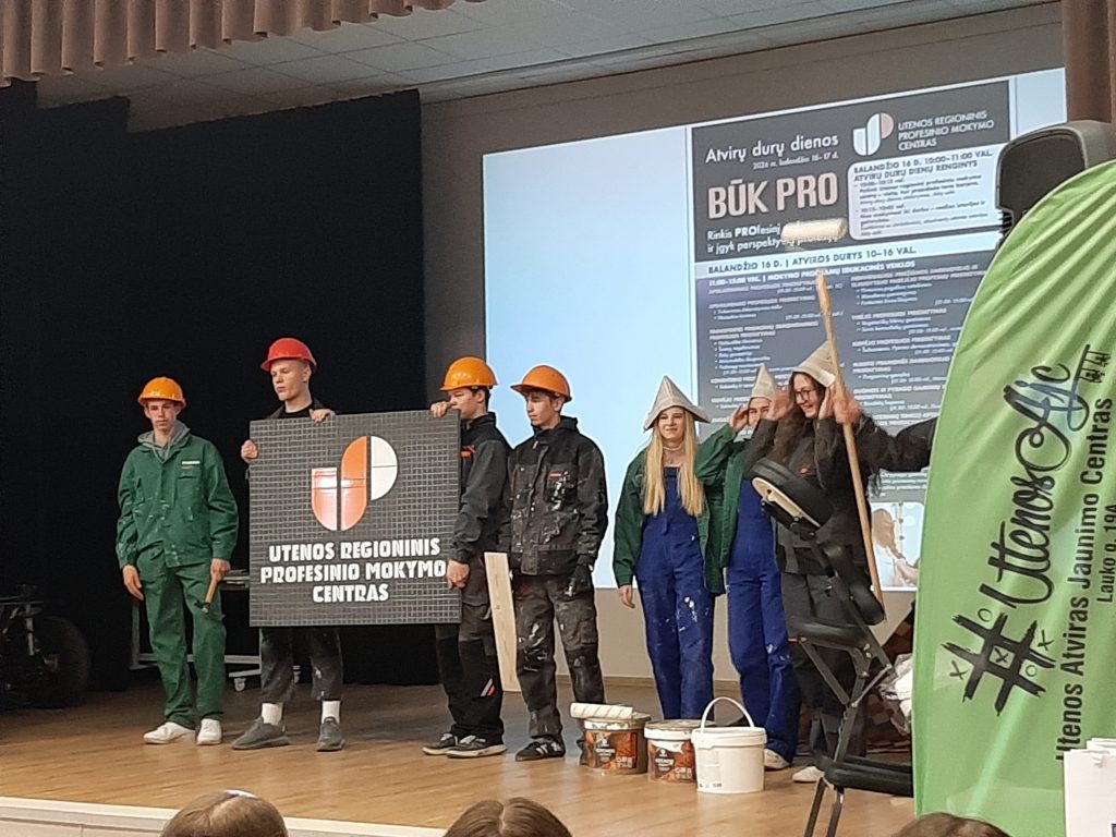 Scenoje šmaikščiai pristatytos profesijos, kurias galės rinktis būsimi Utenos RPMC mokiniai