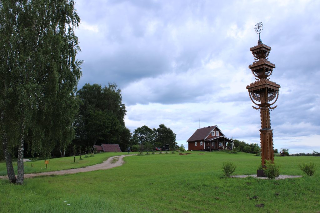Meistras pasakojo, kad priešokiais ąžuolinį stogastulpį gamino pora metų. Papuošimams išpjauti naudojo net savo gamybos elektrinį siaurapjūklį. Stogastulpį statė sunkvežimis su manipuliatoriumi. Dirbinio pagrinde išgręžtos gal 70 centimetrų gylio skylės, į kurias sukalta kiek storesnė nei skylės diametras armatūra. Tada sodino stogastulpį ant į pusantro metro į žemę įbetonuoto pagrindo. Jo viršuje buvo palikta betoninė duobė, kurią užpylė betonu. Stogastulpį, kol sustings betonas, kuriame buvo įleista armatūra, laikė stiprūs pastoliai. Vienais metais praūžusi stipri vėtra aplaužė sodybos medžius – kad ne jie, šeimininkas sako, ir tvarto stogą būtų nukėlę. Vėtra kiek palenkė ir stogastulpį. Tada vyras su sūnumi nuardė kai kuriuos papuošimus ir per briauną gręžė taip, kad pataikytų pergręžti į dirbinio pagrindą sukaltą armatūrą. Į skyles sukalė 10 milimetrų skersinius. „Tai dabar stovi gerai“, – sakė savo darbu užtikrintas vyras.