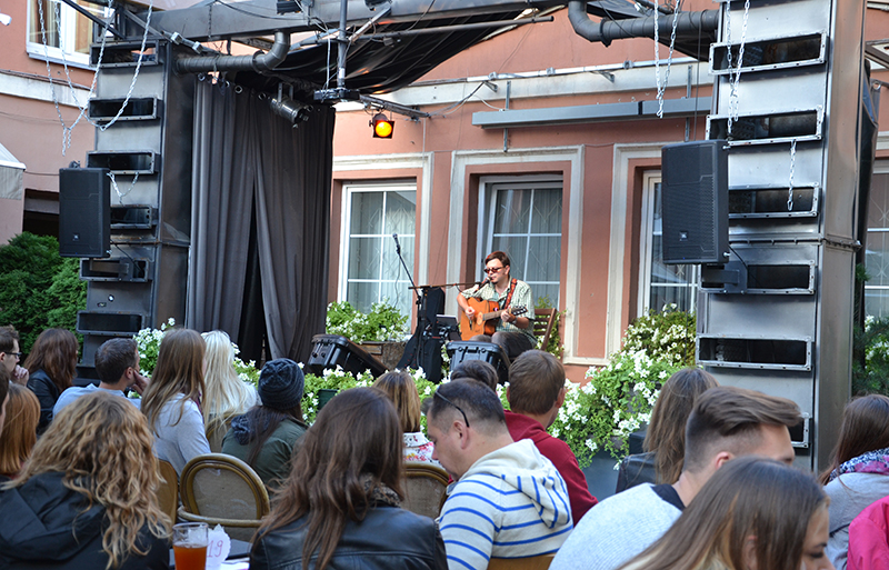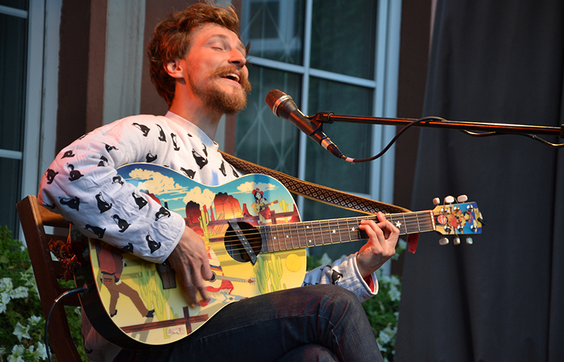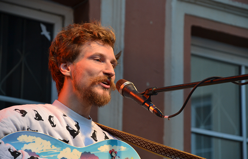 Pirmas į sceną lipo Domantas Razauskas, gerai žinomas dainuojamosios poezijos atlikėjas, šią vasarą itin įtemptai koncertavęs. D. Razauskas pasakojo, jog būdavo ir tokių savaičių, kai tekdavo sukarti per 2 000 kilometrų. „Šiandien pagrosiu lyriškesnių dainų, kurių tokią įtemptą koncertais vasarą nebūna progos atlikti”, – kalbėjo D. Razauskas.