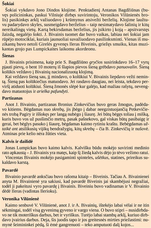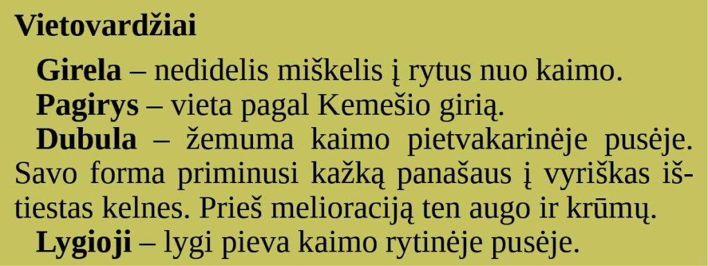 Dideli klojimai buvo pas Veroniką Vilūnienę, Oną Lumpickienę, Joną Dindą (ant šio klojimo pamatų vėliau V. Vilūnienė pasistatė namus).