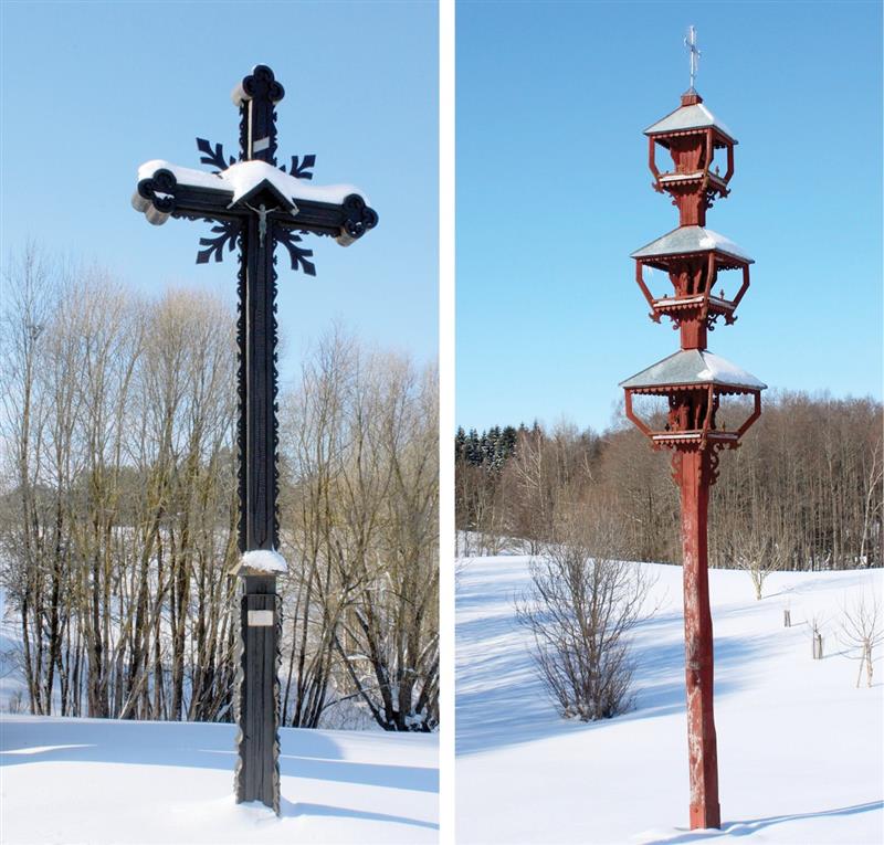 Jono Bivainio dirbintas kryžius ir stogastulpis