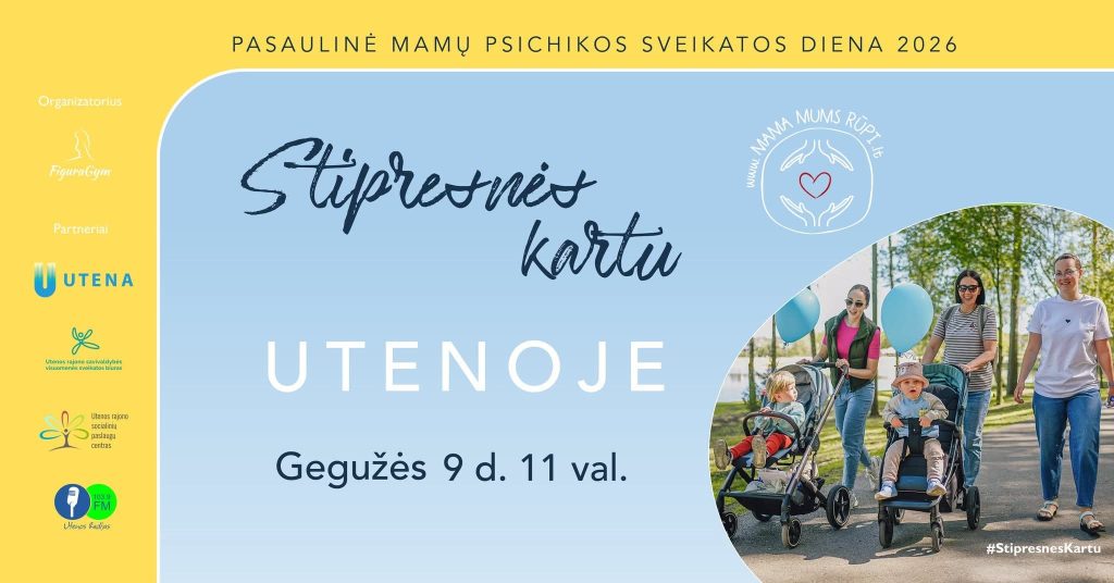 Gegužės 6-10 dienomis visoje Lietuvoje vyks bendruomeniniai ėjimo renginiai „Stipresnės kartu“, skirti paminėti Pasaulinę mamų psichikos sveikatos dieną. Ketvirtus metus organizuojama iniciatyva kviečia mamas su įvairaus amžiaus vaikais, tėčius, senelius, draugus ir visus, kuriems rūpi mamų emocinė gerovė, susiburti ir atkreipti dėmesį į šios temos svarbą.